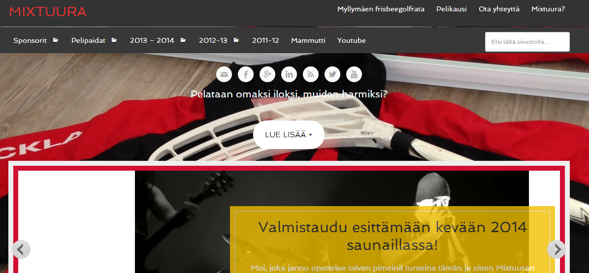Molemmat sivut noudattavat ns. HTML5 Markup ja Mobile Responsive asioita jotka ovat IN tällä hetkellä. Ensimmäinen Mixtuuran pääsivu näyttää tavallisella selaimella (zoomaile hiirtä liikuttamalla) tältä: