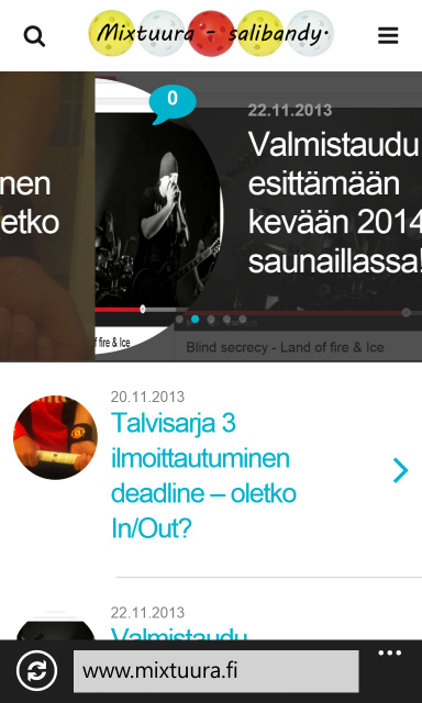 En itsekään juuri koodaa tai olen päätoiminen nettisivujen tekijä mutta mm. Joomla, Drupal ja WordPress sekä myös Sharepoint tarjoavat ko. ympäristöä ja sen päälle sitten mobiiliteema jolla ko. asiat onnistuvat, ilman ohjelmointia eri päätelaitteille. Vastaavasti Mixtuuran pääsivu näyttää mobiiliselaimella (zoomaile sormea liikuttamalla) tältä: